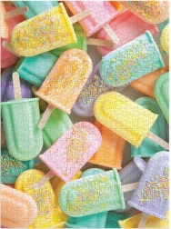Ce puzzle présente un magnifique collage pastel rempli de friandises glacées qui apporte de la joie à chaque pièce.