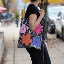 Ce sac présente l'imprimé floral célèbre d'Andy Warhol, lui conférant une touche artistique.