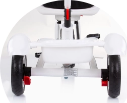 Ceintures de sécurité avec rembourrages doux, barre de protection et carter de roue avant protègent les petits pilotes. Large siège rembourré et auvent avec pare-soleil assurent le confort par tous les temps.