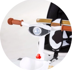 Le tricycle Chipolino Futuro 2-en-1 s’adapte aux besoins actuels de l’enfant et des parents. En mode guidage parental, il assure un contrôle total, puis il est possible de passer au pédalage autonome. Le siège peut être orienté face ou dos à la route et propose également 2 positions d’inclinaison pour plus de confort lors des longues promenades.