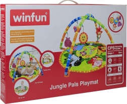Ce tapis d’éveil doux et sûr, inspiré de la jungle, accompagnera votre bébé tout au long de sa première année et au-delà. Les couleurs contrastées et les jouets suspendus sur l’arche attirent son attention : il peut d’abord les observer, puis les saisir et les secouer. Il renforce ainsi naturellement les bras, le dos et le cou, améliore la coordination œil–main et développe ses capacités cognitives.