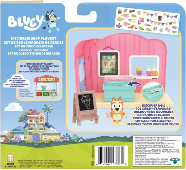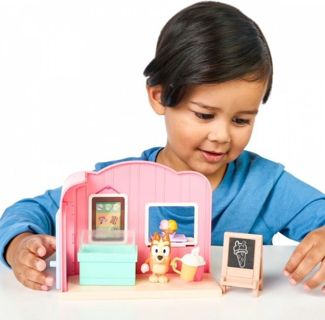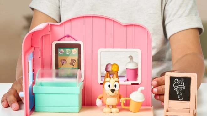 Le Mini Lodziarnia Bluey est un set ludique qui permet aux enfants de plonger dans le monde de Bluey. Cet ensemble comprend un stand à glace rose et la figurine Bingo, servant de vendeur de glaces. Les enfants peuvent créer leurs propres histoires grâce au design authentique et aux détails comme le stand à glace, le congélateur à glaces et d'autres accessoires.