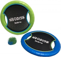 Neodisk Sporto est un set dynamique pour un jeu d’extérieur rapide et simple. Chaque disque possède un bord à la fois solide et léger, ainsi qu’un filet souple pour faciliter la réception et le rebond de la petite balle toute douce. Grâce à des règles simples, toute la famille peut se lancer immédiatement dans la partie.