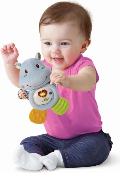 Le Vtech Hippopotame Ami est conçu pour offrir à la fois du divertissement et une aide pendant la croissance des dents de bébé. Le jouet est équipé de parties souples pour masser les gencives et de poignées faciles à saisir, idéales pour les petites mains d'enfants. L'hippopotame est léger et agréable au toucher, et lorsque vous appuyez sur son ventre avec le cœur lumineux, il s'illumine et offre un divertissement interactif. De plus, le jouet propose :