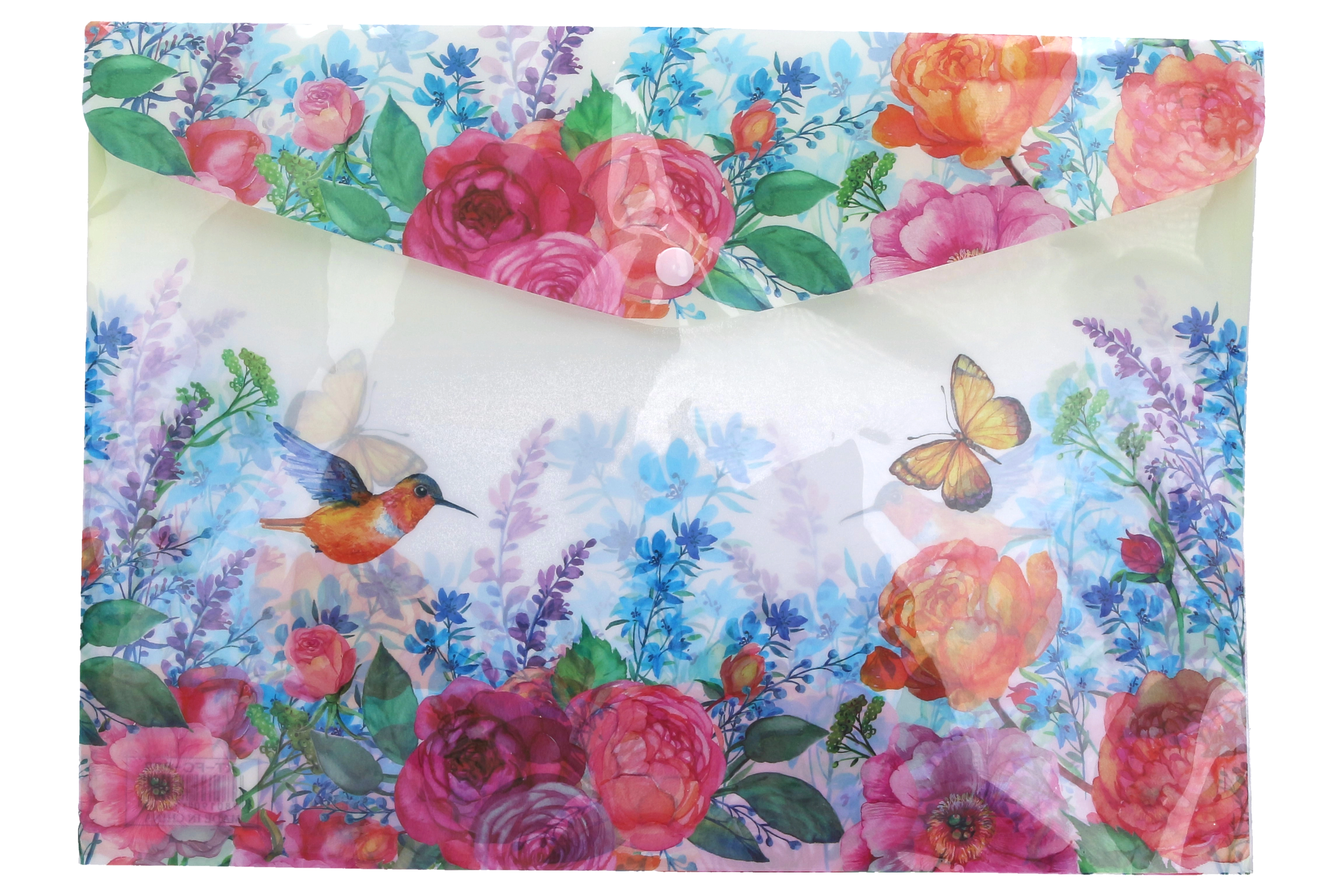 Chemise pratique à pression au format 35 × 25 cm avec un délicat motif floral « floral ». Elle offre une fermeture à pression facile, une protection fiable des documents et est disponible en 4 coloris pour un usage quotidien à la maison, à l’école ou au bureau.