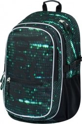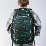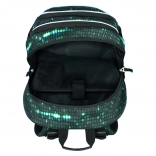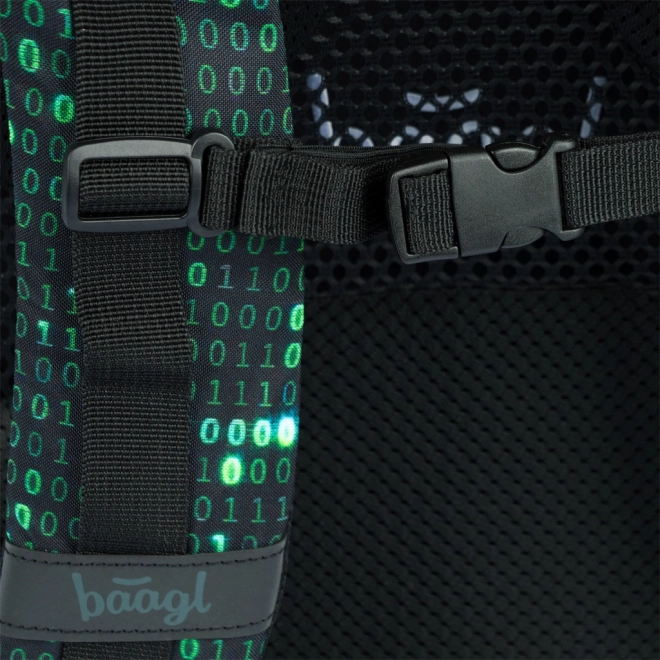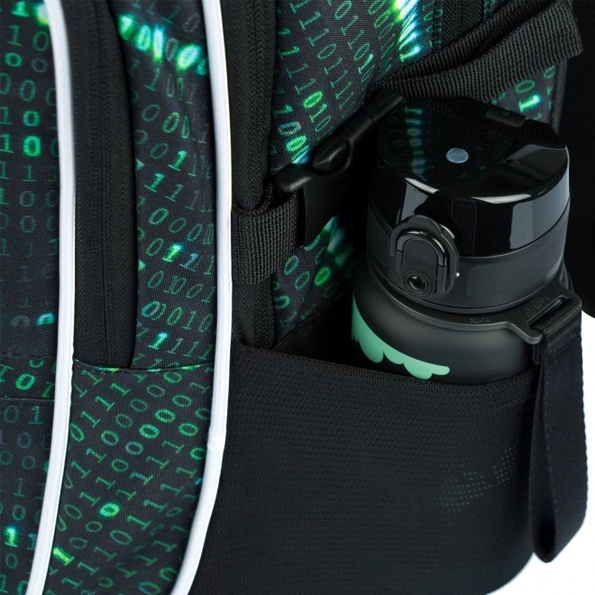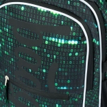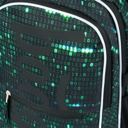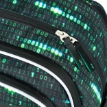 Ce sac à dos se distingue par un design unique avec un motif de code binaire en vert et noir, qui attirera l’attention de tout étudiant passionné de technologie.