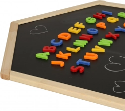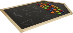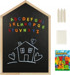 Ce tableau à craie magnétique en forme de maison apporte aux enfants amusement et apprentissage à la fois. Grâce à la combinaison d'une surface à craie et d'une surface magnétique, les petits artistes peuvent dessiner, écrire leurs premières lettres et chiffres ou composer des mots avec des lettres magnétiques colorées. Le tableau est prêt à être accroché au mur et deviendra une décoration originale de la chambre d'enfant.