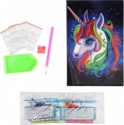 Les strass colorés créent un motif en relief et scintillant qui transforme un carnet ordinaire en accessoire incontournable.