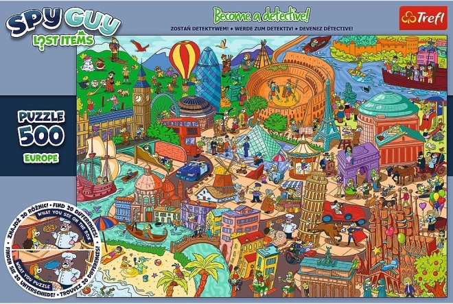 Découvrez un défi amusant pour enfants et adultes. Le puzzle Spy Guy Lost Items propose une chasse maligne – certains objets de l’illustration ont mystérieusement disparu et votre mission est de les retrouver. Le puzzle terminé mesure 480 × 340 mm et séduit par sa carte illustrée et colorée de l’Europe.
