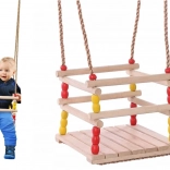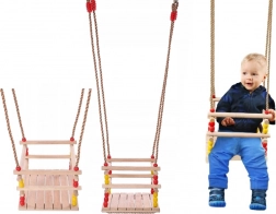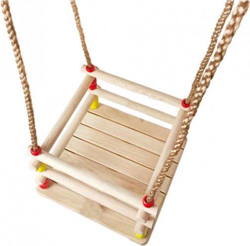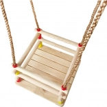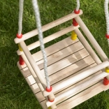 Cette balançoire en bois avec assise 30 × 30 cm et barrière de sécurité avant est conçue pour les jeunes enfants. Grâce au bois finement poncé, l’assise est confortable et agréable au toucher. Après une imprégnation adaptée, elle convient à l’intérieur comme à l’extérieur – suspendez-la à un arbre, une pergola ou une structure autonome.