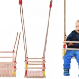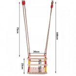Des cordes tressées épaisses avec anneaux et ferrures assurent stabilité et sécurité. Ses dimensions compactes économisent de l’espace et la balançoire se transporte ou se range facilement. Des perles colorées ajoutent une touche ludique et les enfants l’adopteront rapidement.