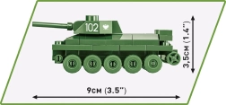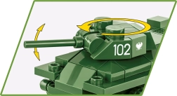 Le mini modèle en blocs de construction COBI est constitué de 101 pièces de première qualité et est construit à l'échelle 1:72. Une fois terminé, il mesure 9 cm de longueur et conserve tous les éléments essentiels de son modèle historique. Sur les côtés de la tourelle, on trouve des inscriptions indiquant l'armée polonaise à l'Est et le numéro 102. Le char est équipé de roues mobiles, ce qui permet de le déplacer facilement, et la tourelle est rotative.
