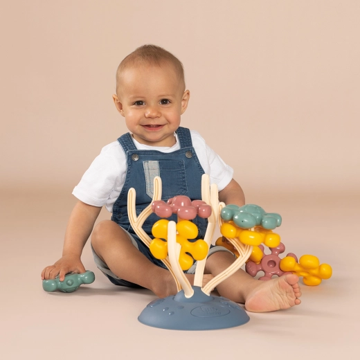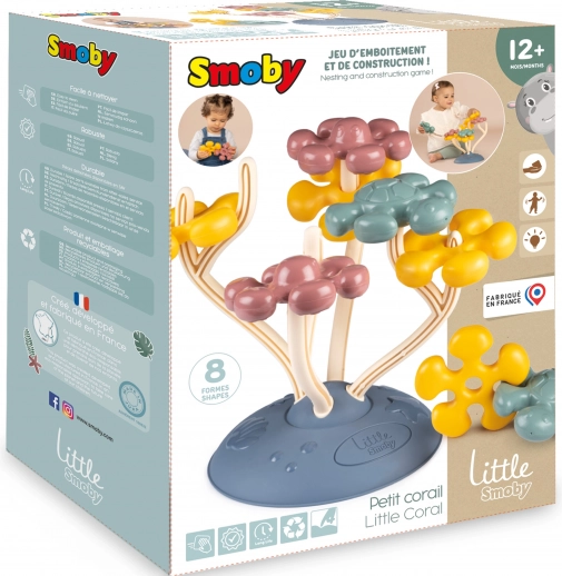 Les Petits jouets d’arbre corallien Smoby sont composés de huit éléments en plastique de couleurs différentes, rappelant des formes décoratives octopodes et tortues. Les enfants peuvent facilement relier les pièces et modifier leur disposition sur les branches de l’arbre, stimulant ainsi leur créativité.