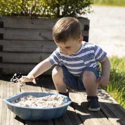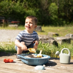 Avec l'arrosoir, le râteau, la pelle et les moules, il est facile de développer la créativité et les compétences motrices fines des enfants.