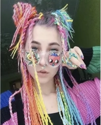 Les teintes arc‑en‑ciel joyeuses donnent du volume et du caractère à la coiffure. Idéales pour les festivals, les fêtes et les looks ludiques du quotidien.
