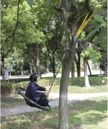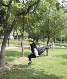 L’installation est rapide et intuitive – des œillets métalliques sont intégrés aux extrémités des cordes pour une suspension simple. La longueur réglable des cordes jusqu’à 180 cm permet d’adapter la hauteur à différents utilisateurs et emplacements. Grâce à une capacité de 150 kg et à des cordes de 10 mm robustes, la balançoire est sûre pour enfants et adultes.