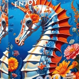 Découvrez la beauté du monde sous-marin avec le puzzle Enjoy – hippocampe. Le set de 1000 pièces offre une découpe précise, des couleurs vives et, une fois assemblé, crée une image de 48 × 68 cm, idéale à encadrer ou comme défi relaxant pour les amateurs de puzzles.