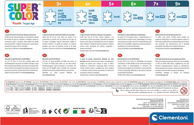 La gamme SuperColor de Clementoni est spécialement conçue pour les enfants – elle utilise un carton de qualité et une impression précise pour des couleurs intenses et durables. L’assemblage développe la pensée logique, la patience et la coordination œil–main.