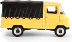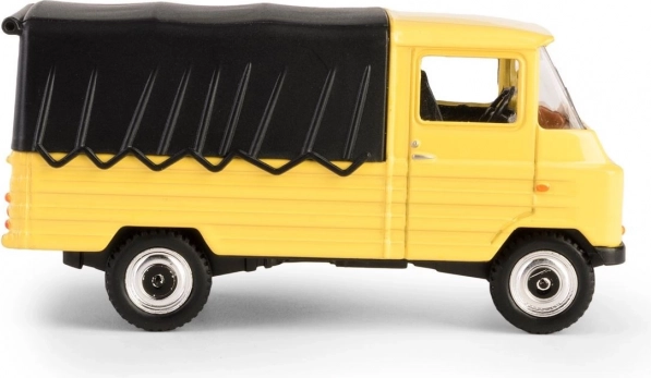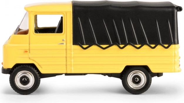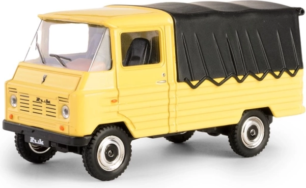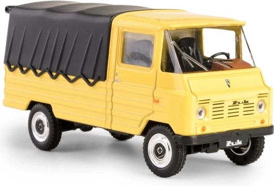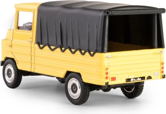Découvrez la légende en format de poche : le modèle FSC Żuk, inspiré du cultissime utilitaire polonais fabriqué à Lublin. Cette pièce de collection, dans un jaune vif avec bâche noire, reproduit fidèlement l’apparence et les proportions de l’original, y compris les détails de la cabine, des roues et de la calandre.