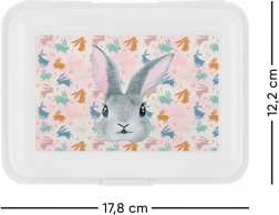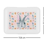 Pratique boîte à goûter d’un blanc pur avec un adorable motif Bunny, elle garde les aliments frais et bien séparés grâce à son cloisonnement intérieur. La fermeture à un seul loquet fiable empêche toute ouverture involontaire dans le sac. Idéale pour l’école, les sorties et le travail.