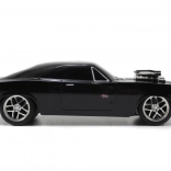 La voiture est équipée d'une fonction turbo pour atteindre une vitesse maximale de 8,2 km/h, apportant encore plus de sensations à la conduite. La couleur noire et les détails argentés évoquent l'apparence iconique de la véritable muscle car. Elle est alimentée par des piles (3x 1,5V LR03 (AAA) et 2x 1,5V LR6 (AA)) qui ne sont pas incluses dans l'emballage.
