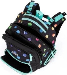 Des détails qui comptent : deux compartiments intérieurs offrent suffisamment d’espace pour manuels, cahiers et effets personnels. Le fond résistant protège le contenu contre la saleté extérieure et évite toute fuite de liquides à l’intérieur. Sur les côtés, une poche ouverte pour une bouteille et une petite poche zippée permettent un accès rapide aux petits objets. La poche avant convient à une boîte à goûter et une petite poche pour bricoles, toutes deux zippées.