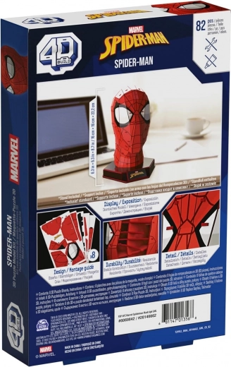 Créez votre propre tête iconique de SPIDER-MAN avec un modèle 4D Build détaillé, sans colle ni outils. Le kit comprend 82 pièces détachables sur 8 plaques, un socle robuste avec le logo MARVEL SPIDER-MAN et un manuel clair. Le modèle fini mesure 16 × 16 × 22,2 cm et est idéal comme décoration pour une chambre, une salle de jeux ou votre collection de super-héros.