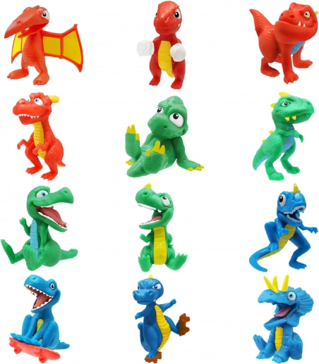 - 12 assortiments – couleurs de slime variées et différentes figurines de dinosaures.