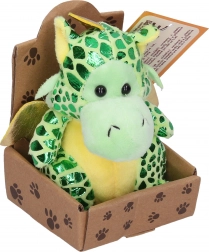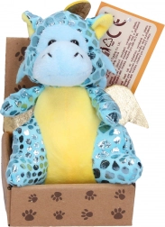 Ce dragon en peluche apporte de la joie grâce à sa finition scintillante et à son format compact de 13 cm, qui se glisse facilement dans un sac à dos ou sur une étagère. Son tissu doux est agréable au toucher et invite aux câlins, tandis que ses couleurs vives en font à la fois une décoration attrayante et un compagnon de voyage.