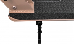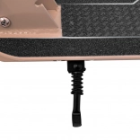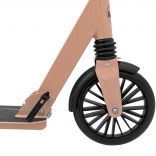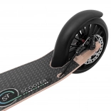La sécurité est entre vos mains : la combinaison d’un frein à disque manuel et d’un frein arrière à pied offre un arrêt sûr et rapide. Les roues en caoutchouc 190 × 35 mm amortissent très bien les petites irrégularités et la surface antidérapante du deck maintient le pied même par temps humide. Une béquille est incluse pour un stationnement pratique.