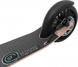 Trottinette urbaine stylée SporTrike avec cadre en aluminium léger, système de freinage double (frein à disque manuel + frein arrière à pied) et hauteur de guidon réglable pour une conduite confortable. Plateau antidérapant, roues en caoutchouc 190 mm et béquille pratique pour la sécurité, la stabilité et un stationnement facile.