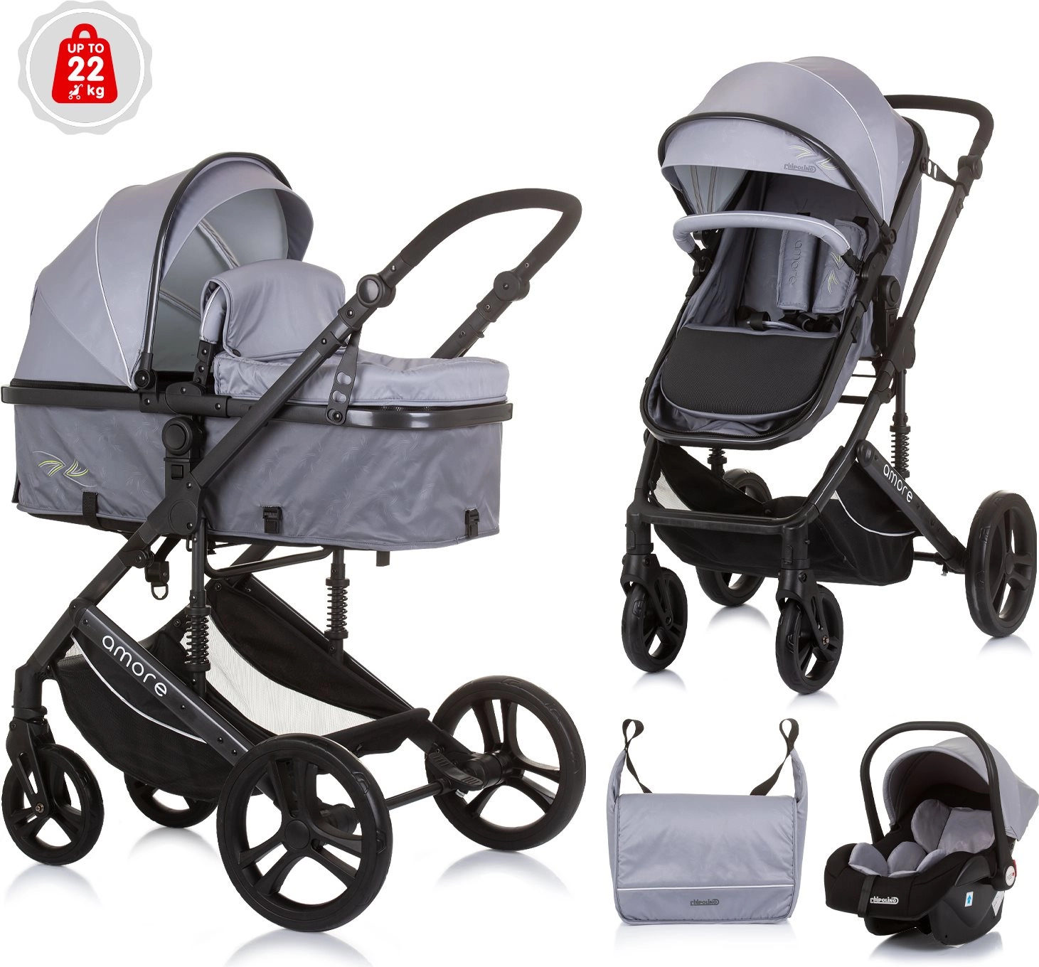 La poussette polyvalente Amore 2-en-1 combine version nacelle et version siège sport dans une seule solution pour les promenades quotidiennes comme pour les escapades plus longues. Grâce au châssis suspendu, aux grandes roues amovibles et à la poignée réglable en hauteur, elle offre du confort à l’enfant comme aux parents. Le siège se règle sur 3 positions et se retourne face route ou face parents.