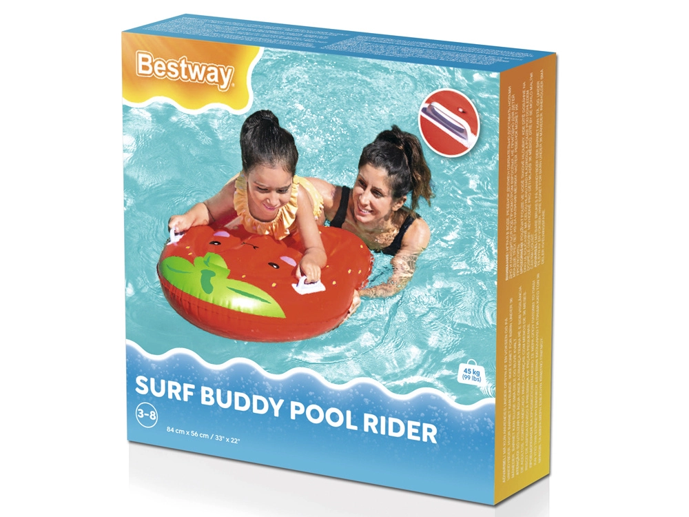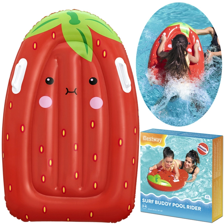 Légère et stable, la planche gonflable BESTWAY pour enfants de 3 à 8 ans aide lors des premiers pas dans l’eau. Grâce à deux poignées latérales, elle offre assurance, équilibre et sécurité pour s’entraîner aux battements et aux mouvements de bras. Le motif fraise amusant et la forme ergonomique favorisent une bonne posture et une utilisation confortable en piscine comme en mer.