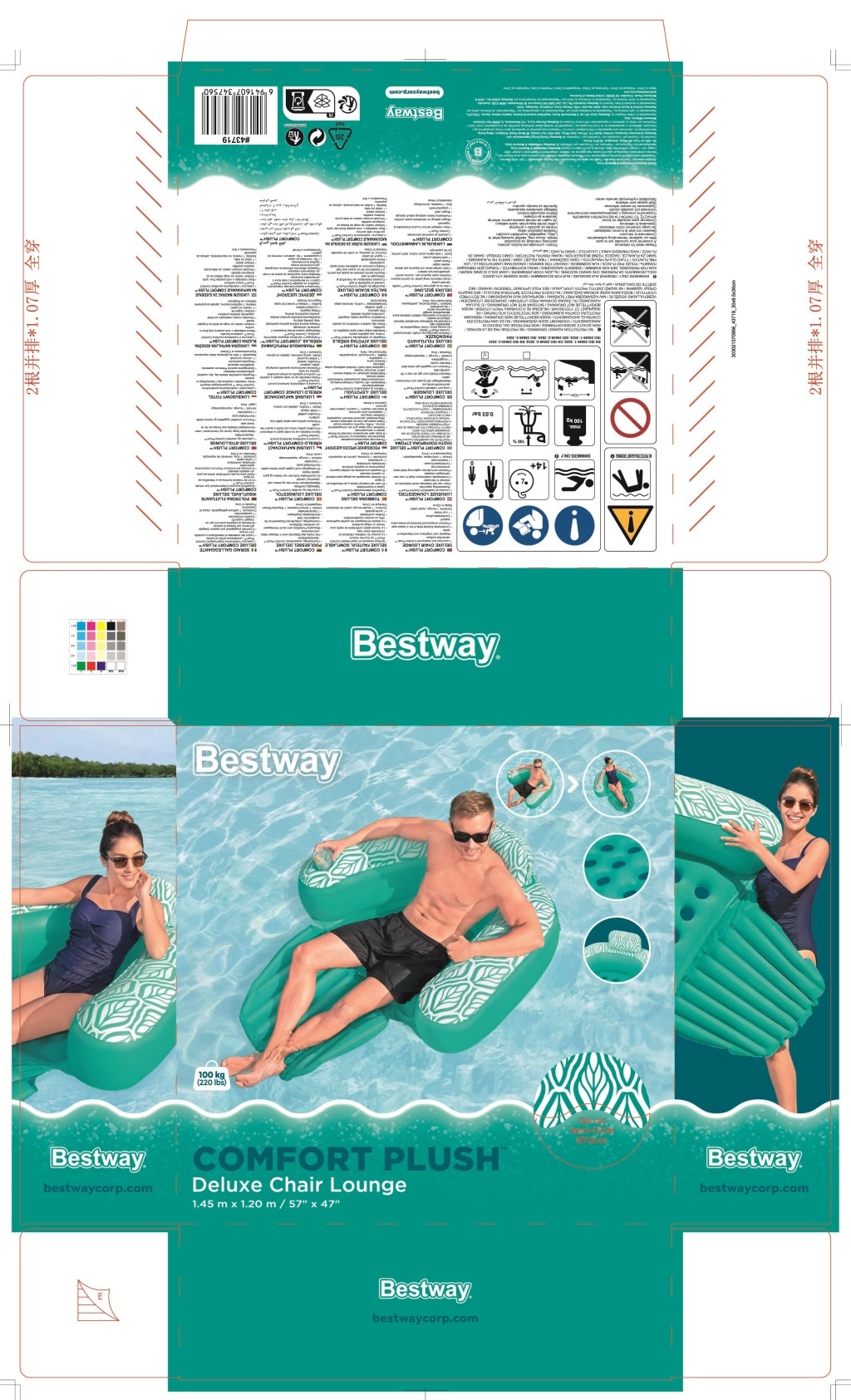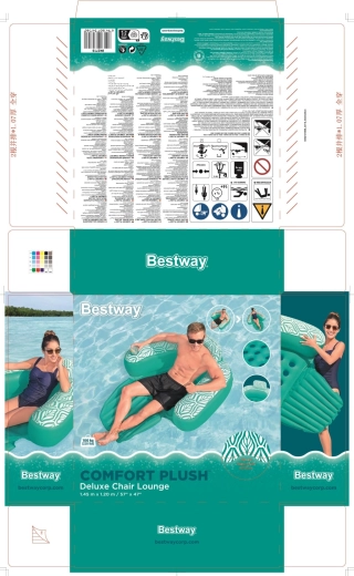 Profitez de l’été dans un confort maximal avec le fauteuil gonflable pour l’eau Bestway Deluxe Comfort Plus. Il offre des coussins de soutien moelleux, un repose-pieds pliant pour une assise surélevée, un porte-boisson intégré et une surface hydrofuge durable Comfort Plus, douce comme du velours et qui intensifie la couleur dans l’eau. La stabilité est assurée par 3 chambres à air et des valves de sécurité.