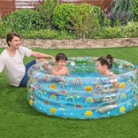 Le fond souple et gonflable protège lors de l’assise et des jeux dans l’eau et augmente le confort tout au long de la journée.
