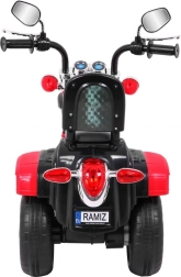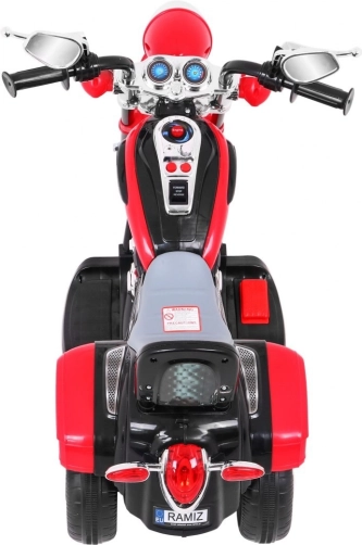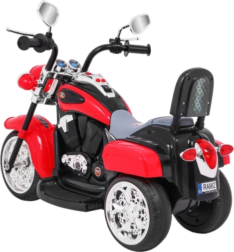 La moto électrique chopper NightBike pour enfants offre une expérience de conduite réaliste pour les petits pilotes. Grâce à ses trois roues, elle est stable, dispose d’une selle confortable et d’un phare avant LED. Le panneau audio avec mélodies et entrée AUX assure le divertissement, tandis que le moteur RS-380 6 V et la marche arrière garantissent une manipulation facile et une conduite sûre.