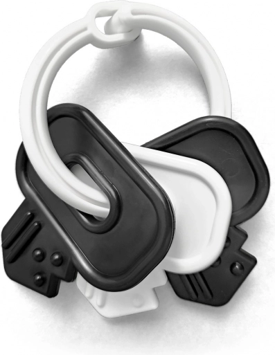 Ces clés contrastées en noir et blanc sont le jouet idéal pour les bébés – elles favorisent la concentration et la perception visuelle dès le plus jeune âge. Grâce à la combinaison de plastique et de silicone, les clés sont légères, résistantes et agréables au toucher. Adaptées aux petites mains et aux découvertes quotidiennes.