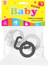 L’anneau de dentition à fort contraste noir et blanc en forme de patte d’ours, avec des formes en plastique suspendues (anneau, cœur, grelot), stimule la vision des nouveau-nés, favorise le développement des sens et apporte du plaisir à mordiller.