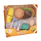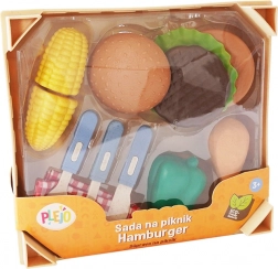 Le set de pique-nique Plejo est idéal pour tous les petits chefs qui souhaitent ressentir une expérience authentique en préparant leur propre hamburger. Il contient une large gamme d’imitations alimentaires en plastique, y compris un pain à hamburger, de la viande, des légumes et des accessoires.