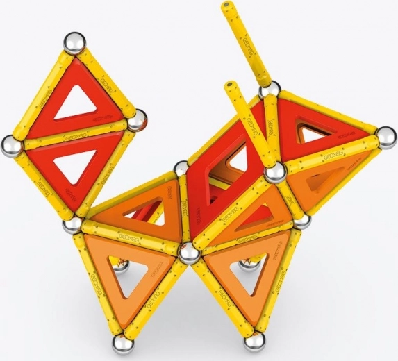 Découvrez la puissance de la géométrie avec Geomag Classic Panneaux. Ce kit magnétique comprend 28 tiges magnétiques jaunes, 20 billes en acier, 16 remplissages triangulaires, 2 remplissages rouges en forme de pentagone et 12 remplissages en forme de carré. Un boîtier en plastique pratique pour les billes et les tiges est également inclus.