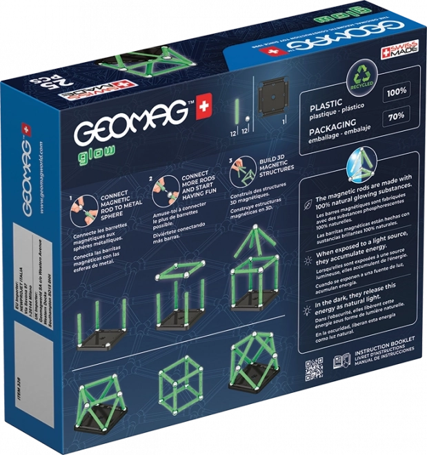 Un jeu de construction magnétique lumineux qui brille dans l’obscurité t’apporte une nouvelle dimension de divertissement. La construction, en plastique 100 % recyclé, ne passera certainement pas inaperçue dans le noir ! L’emballage contient au total 25 pièces – 12 tiges lumineuses, 12 billes et un socle noir stable en forme de carré. Convient aux enfants à partir de 3 ans.