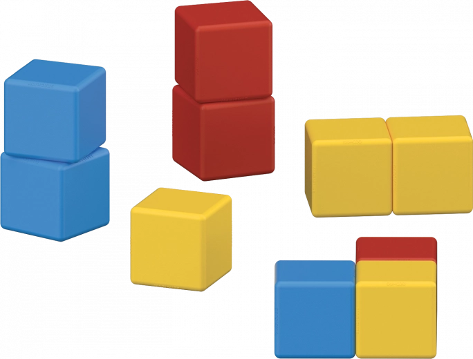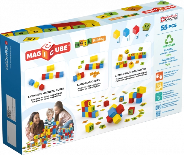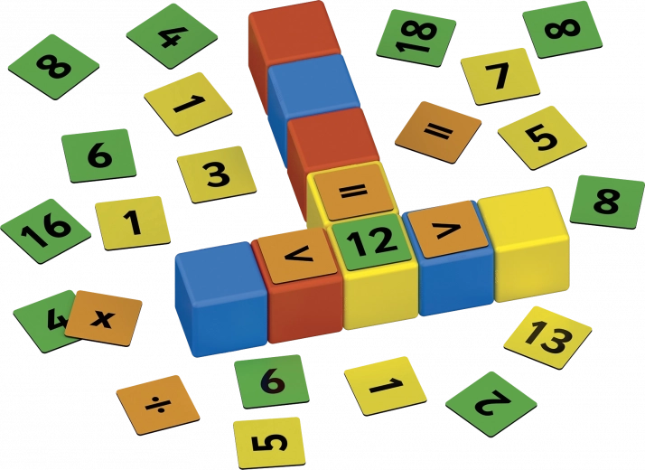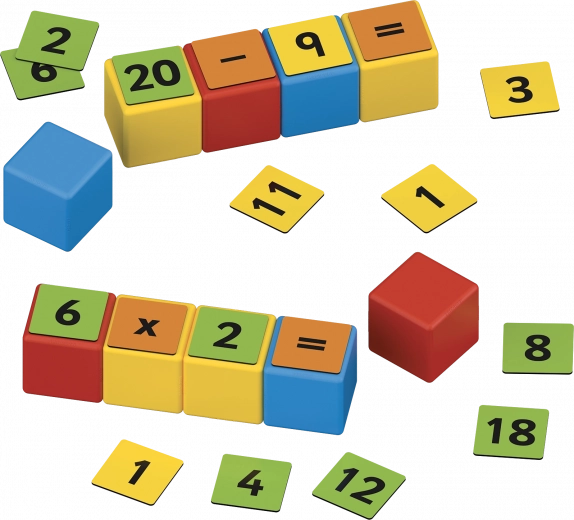 Le set comprend 10 cubes magnétiques et 45 clips double face – la combinaison idéale pour composer des opérations et des formes imaginatives.