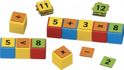 Les clips double face avec chiffres et signes permettent de composer des opérations simples comme plus complexes. Les enfants s’entraînent naturellement à l’addition, la soustraction et les bases de la multiplication.