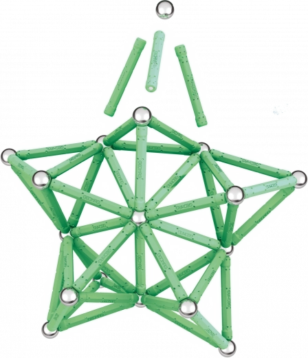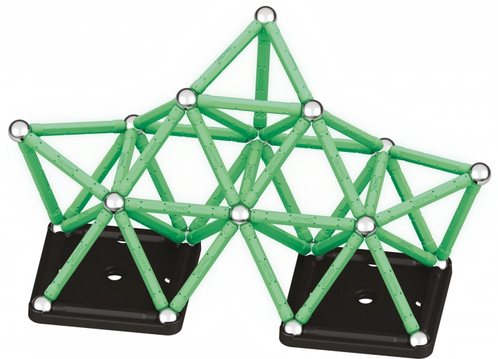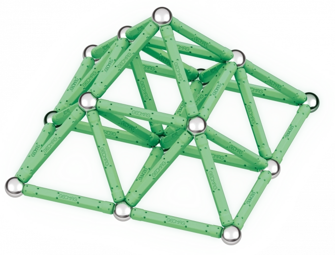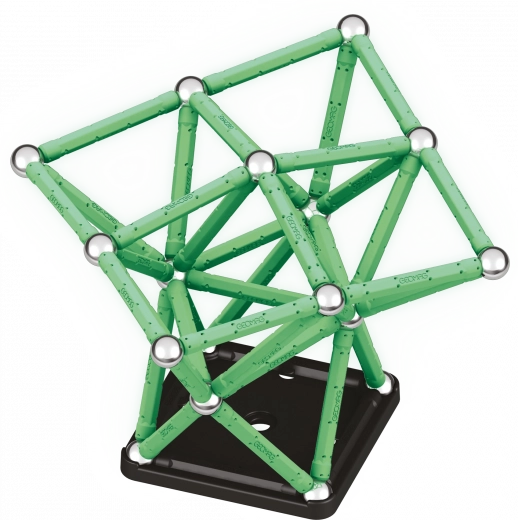 GEOMAG Glow offre une construction ludique et éducative avec un effet phosphorescent spectaculaire. Chargez les pièces à la lumière, éteignez et regardez vos créations s’illuminer. La combinaison de tiges magnétiques et de billes métalliques permet de construire des formes simples comme des structures 3D complexes.