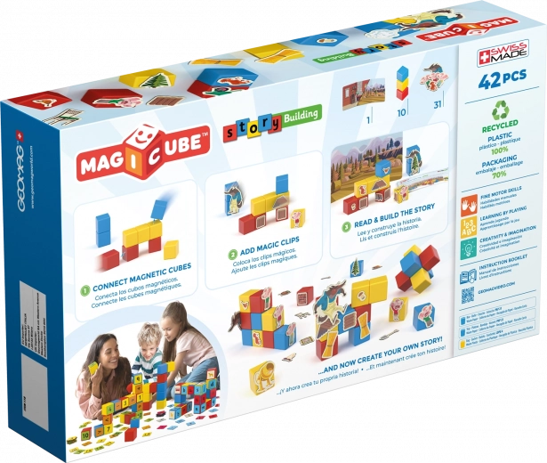 Découvrez l’ingénieuse construction Geomag Magicube inspirée du conte Les Trois Petits Cochons. Les cubes magnétiques s’attirent de tous les côtés, ce qui permet aux enfants de construire facilement et de créer leurs propres histoires grâce à 31 clips thématiques. Inclus, un texte en tchèque et en slovaque. Fabrication suisse de qualité, matériaux sûrs et longue durée de vie.