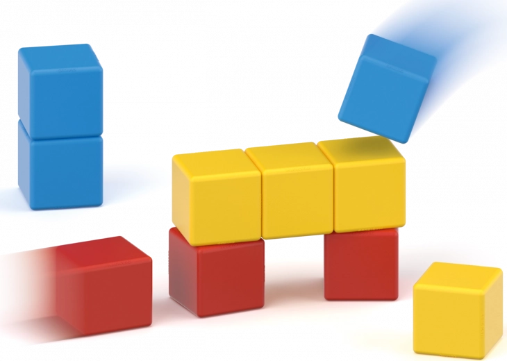 Chaque cube s’aimante sur n’importe quelle face grâce à sa structure interne. Les enfants construisent rapidement des formes stables, sans frustration, et avec l’envie de créer.