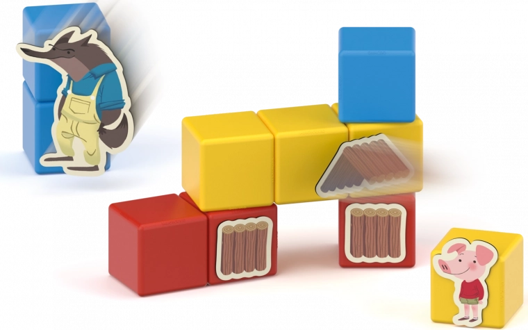 Le set comprend 10 cubes magnétiques solides et 31 clips illustrés avec des motifs de cochons, du loup et de la construction des maisons, afin que les petits créateurs puissent raconter l’histoire connue ou en inventer de nouvelles. Les matériaux sont sûrs pour la santé et fabriqués avec la précision suisse caractéristique de la marque Geomag.