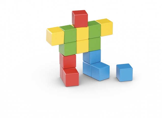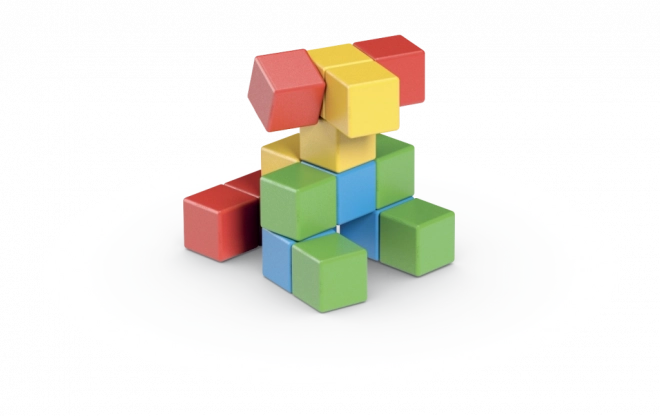 Avec 16 cubes, composez de simples personnages, des animaux et des formes fantastiques. Le jeu développe naturellement l’imagination et la pensée logique.