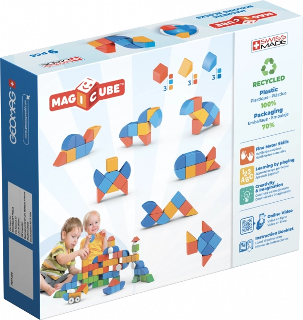Geomag Magicube Shapes est un jeu de construction magnétique ingénieux, pensé pour les petites mains. Neuf pièces colorées, dont deux formes spéciales, s’assemblent sur toutes les faces, permettant aux enfants de créer facilement leurs premiers animaux, moyens de transport et objets simples. Grâce à l’assemblage intuitif, les enfants développent naturellement la coordination œil-main et exercent leur pensée logique.