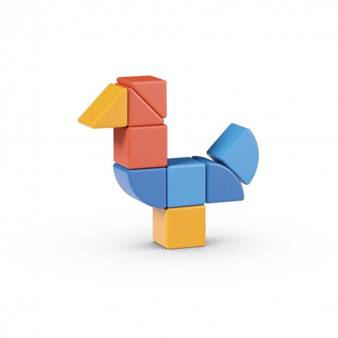 En plus des cubes classiques, le set comprend deux formes uniques qui élargissent les possibilités de construction et stimulent l’imagination.